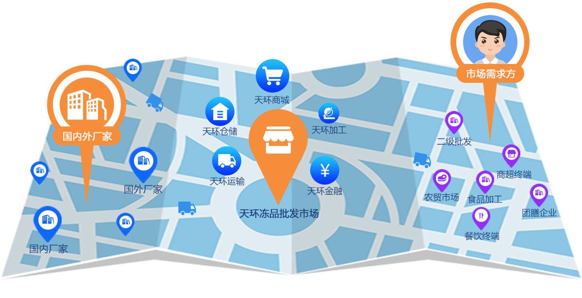 天環(huán)商城是依托于線下實體批發(fā)市場而搭建的一個專注在冷凍食品供應(yīng)鏈的B2B電商平臺。